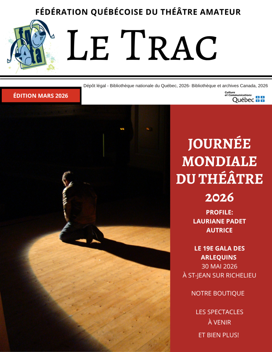 La Fédération québécoise du théâtre amateur publie 4 fois par année sa revue le Trac, entièrement dédié au théâtre d'ici et d'ailleurs. Cette revue numérique présente l'actualité du milieu, présente les projets de la fédération et ceux de ses membres, des articles de fond et des trucs et bons coups, entre autres.
